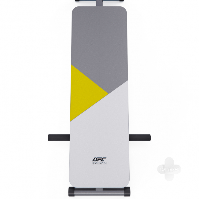 Скамья для пресса DFC DB140/2 с желтым рисунком – надежный тренажер для домашних тренировок! Эта скамья спортивная спортивная сочетает в себе прочность, функциональность и удобство. Стальная рама из профиля 38 х 38 х 1,2 мм гарантирует прочность и устойчивость даже при интенсивных нагрузках. Максимальный вес пользователя составляет 120 кг, что делает скамью подходящей для большинства пользователей. 5 уровней регулировки угла наклона скамьи для жима позволяют менять нагрузку и эффективно прорабатывать разные группы мышц. Вы можете выполнять подъемы корпуса для прокачки пресса, подъемы ног для нижнего отдела живота, а также использовать скамью для упражнений с гантелями. Эргономичные регулируемые валики из вспененного материала обеспечивают комфорт во время тренировки. Нижние валики регулируются на 4 уровня, что позволяет надежно фиксировать стопы. Дополнительные удобства включают стойку для отжиманий и упоры, расширяющие спектр упражнений. Кор-доска отличается устойчивостью благодаря прорезиненным ножкам, которые защищают пол от царапин и предотвращают скольжение. Обивка выполнена из водонепроницаемой экокожи, что облегчает уход за тренажером.